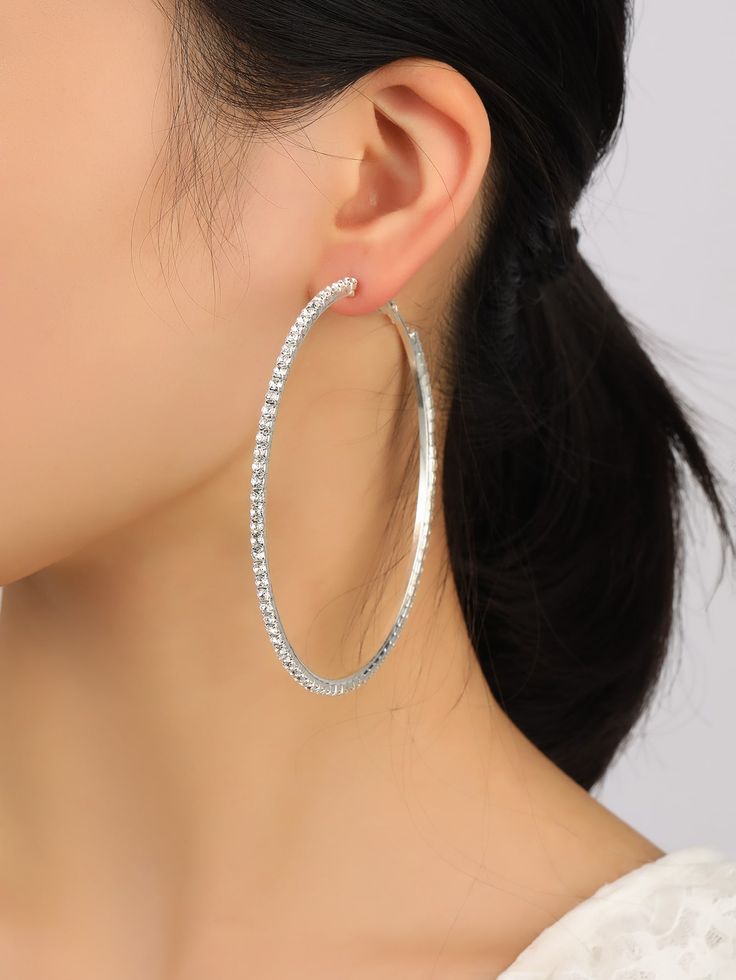 گوشواره حلقه ای زنانه نقرهای نگین دار: جنس استیل با کیفیت ضد حساسیت و رنگ ثابت شیک و سبک ظریف و براق