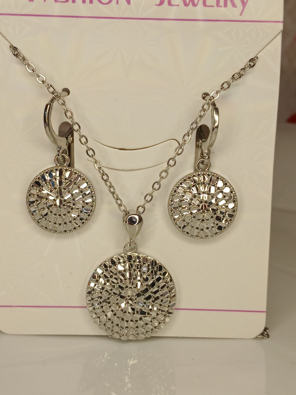 نیم ست زنانه رنگ نقرهای تراش خورده: جنس استیل با کیفیت ضد حساسیت و رنگ ثابت شیک و سبک ظریف و براق