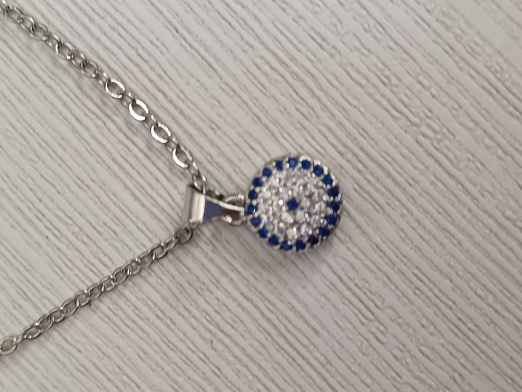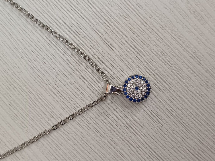 گردنبند زنانه طرح چشم نظر رنگ نقره ای کدN103: جنس استیل ضد حساسیت و رنگ ثابت شیک و سبک ظریف و براق