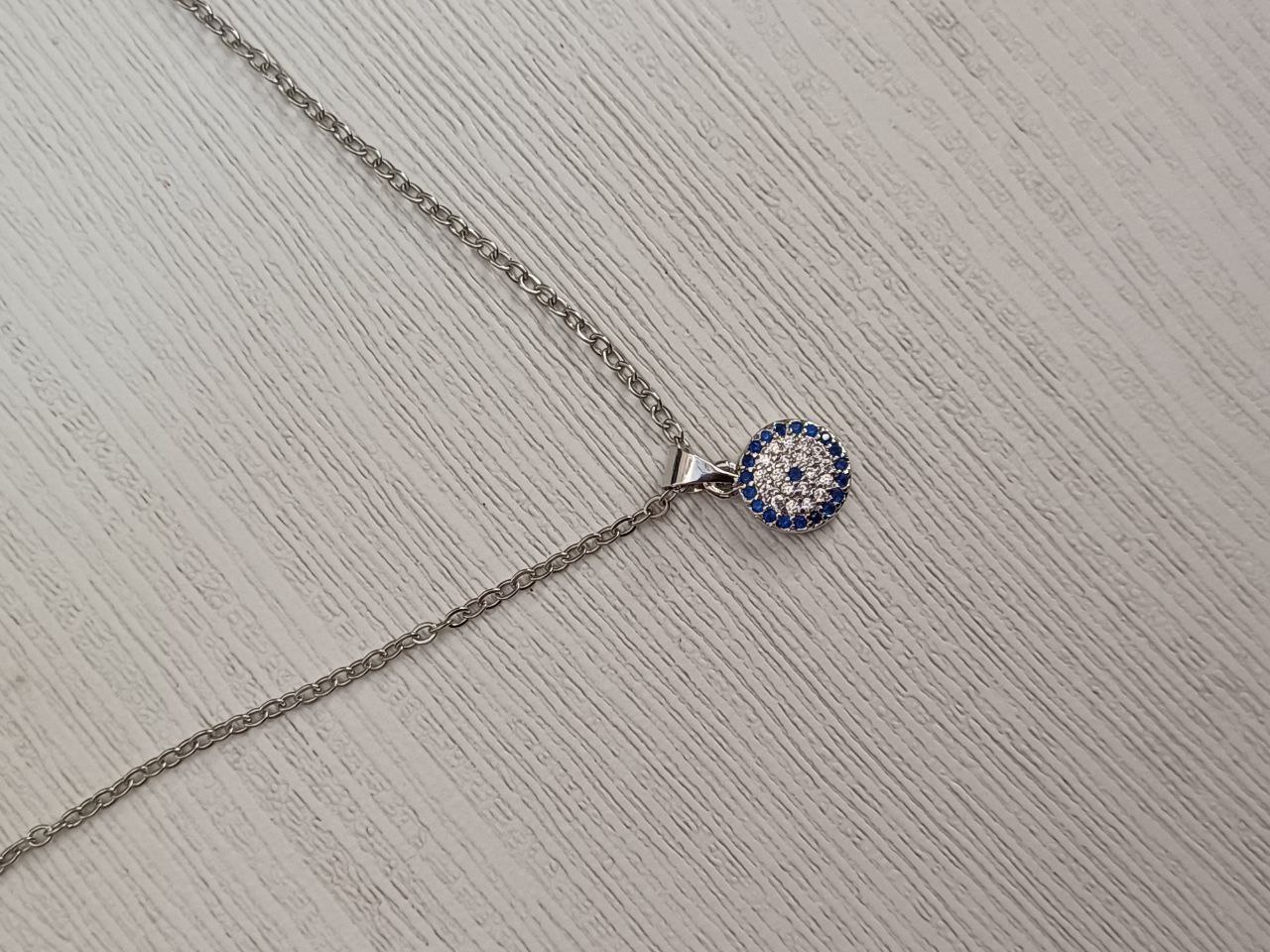 گردنبند زنانه طرح چشم نظر رنگ نقره ای کدN103: جنس استیل ضد حساسیت و رنگ ثابت شیک و سبک ظریف و براق