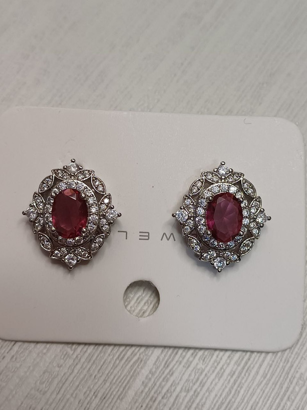 گوشواره زنانه طرح بیضی رنگ نقره ای جواهر نشان جنس استیل ضد حساسیت و رنگ ثابت شیک و سبک ظریف و براق