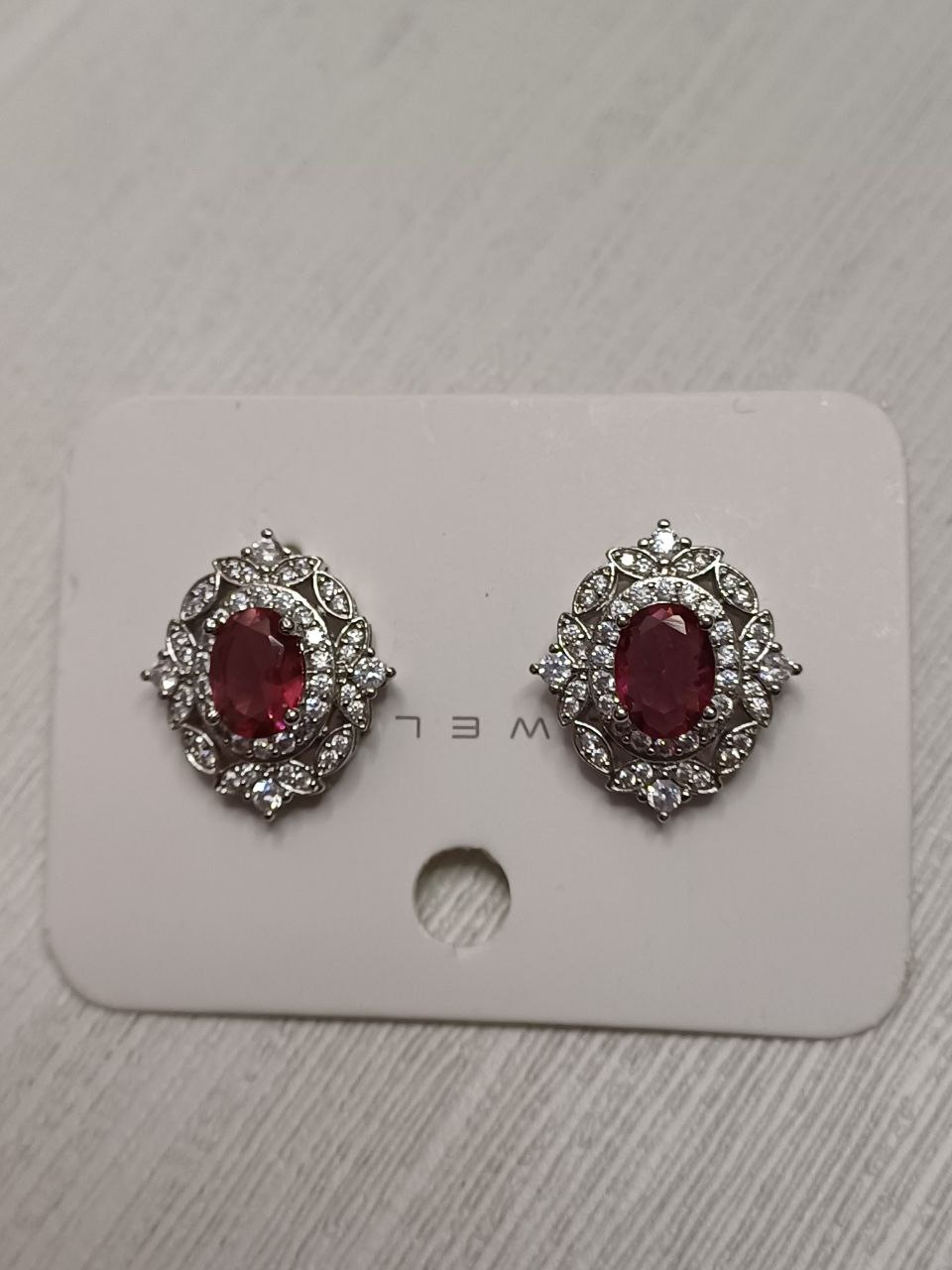 گوشواره زنانه طرح بیضی رنگ نقره ای جواهر نشان جنس استیل ضد حساسیت و رنگ ثابت شیک و سبک ظریف و براق