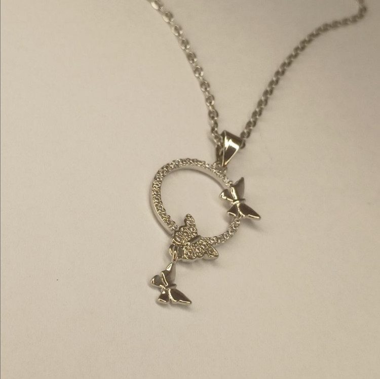 گردنبند زنانه طرح پروانه رنگ نقره ای جنس استیل: ضد حساسیت و رنگ ثابت شیک و سبک ظریف و براق