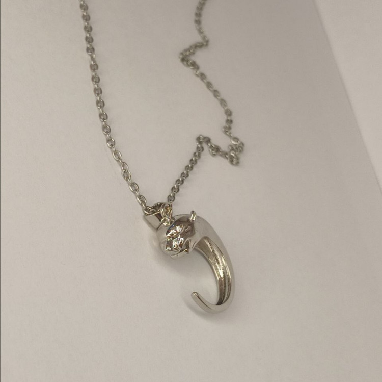 گردنبند زنانه طرح ماه و پلنگ رنگ نقره ای کد N106: جنس استیل با کیفیت ضد حساسیت و رنگ ثابت شیک و سبک ظریف و براق