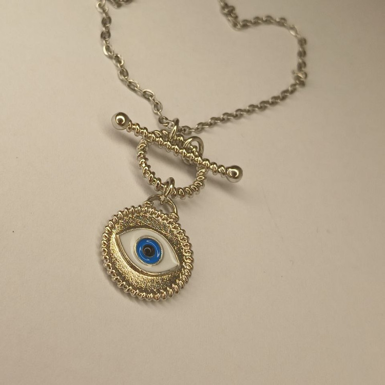 گردنبند زنانه طرح چشم نظر رنگ نقره ای کدN103: جنس استیل با کیفیت ضد حساسیت و رنگ ثابت شیک و سبک ظریف و براق