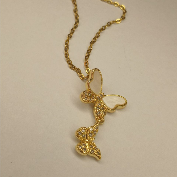گردنبند زنانه طرح پروانه رنگ طلایی N102: جنس استیل با کیفیت نگین دار ضد حساسیت و رنگ ثابت شیک و سبک ظریف و براق