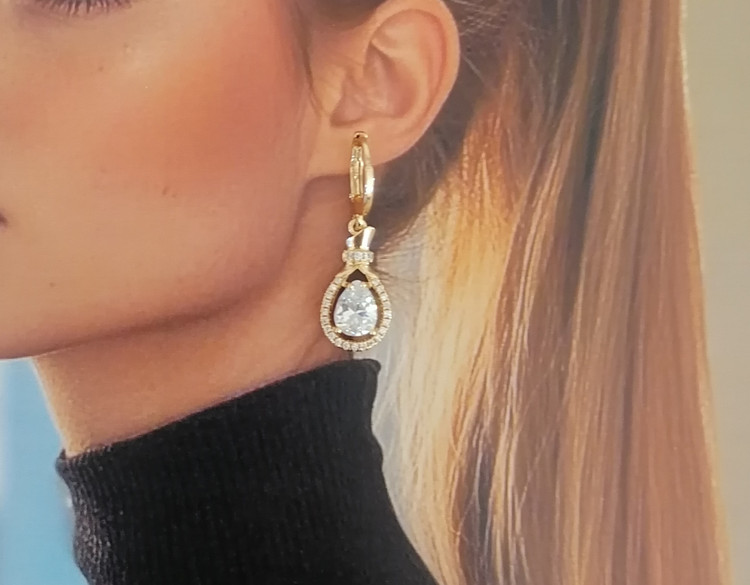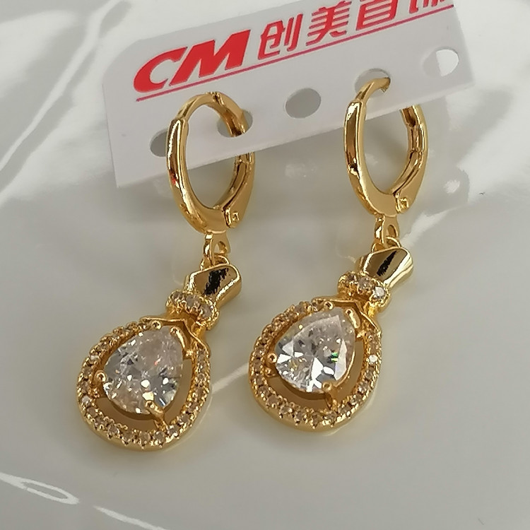 گوشواره زنانه طرح اشک از برند cm است و رنگ طلایی با کیفیت و ثابتی دارد.نگین های براق و شفاف و کاملا شیک و ظریفی دارد