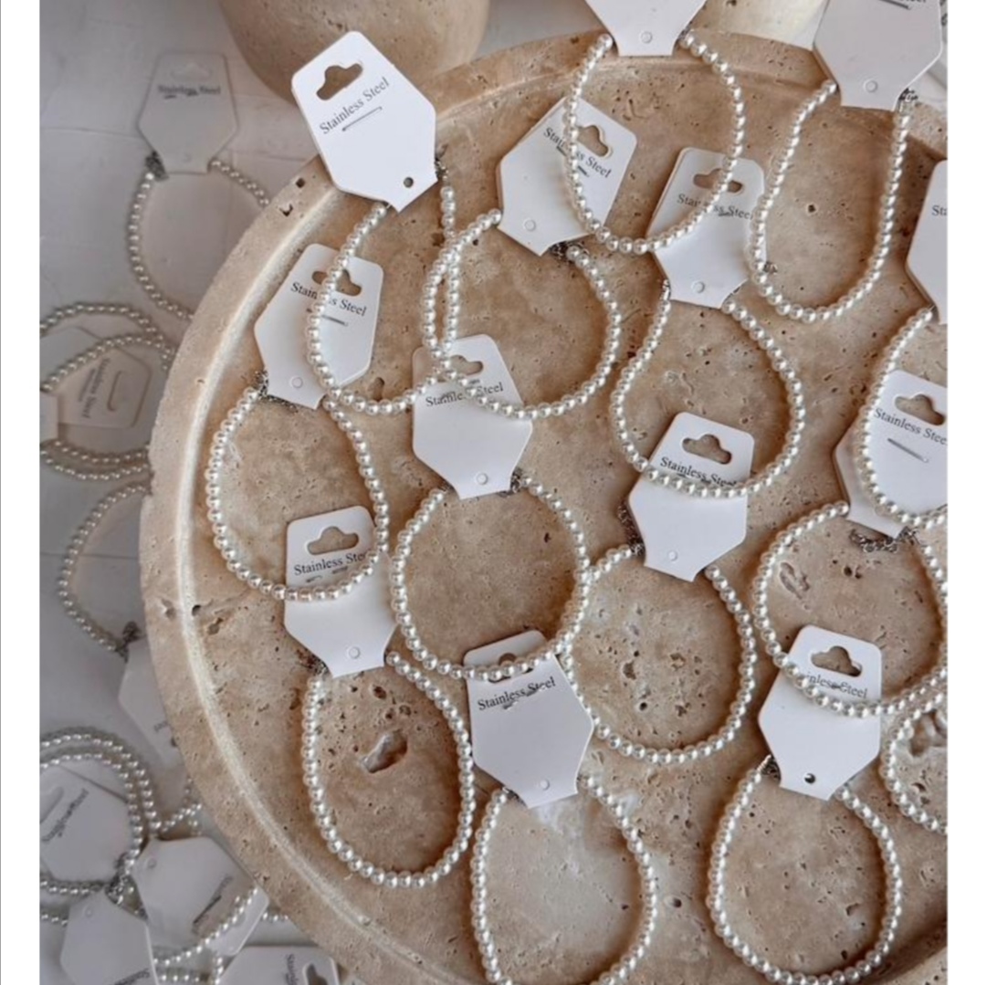 دستبند زنانه مروارید نقره ای استیل مروارید ثابت پوست نمیشه سبک و ظریف