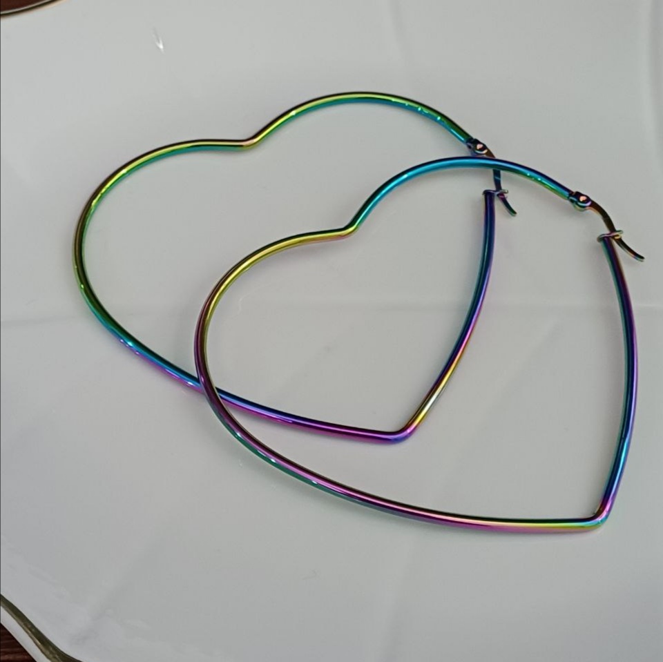 گوشواره مدل قلب هفت رنگ هولوگرامی 7 سانتی