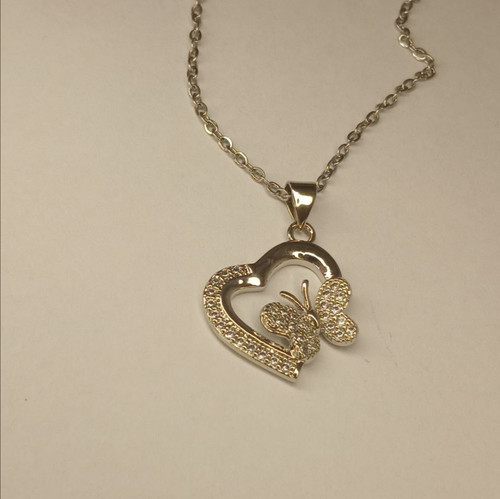 گردنبند مدل قلب و پروانه نقرهای استیل نگین دار کریستالی