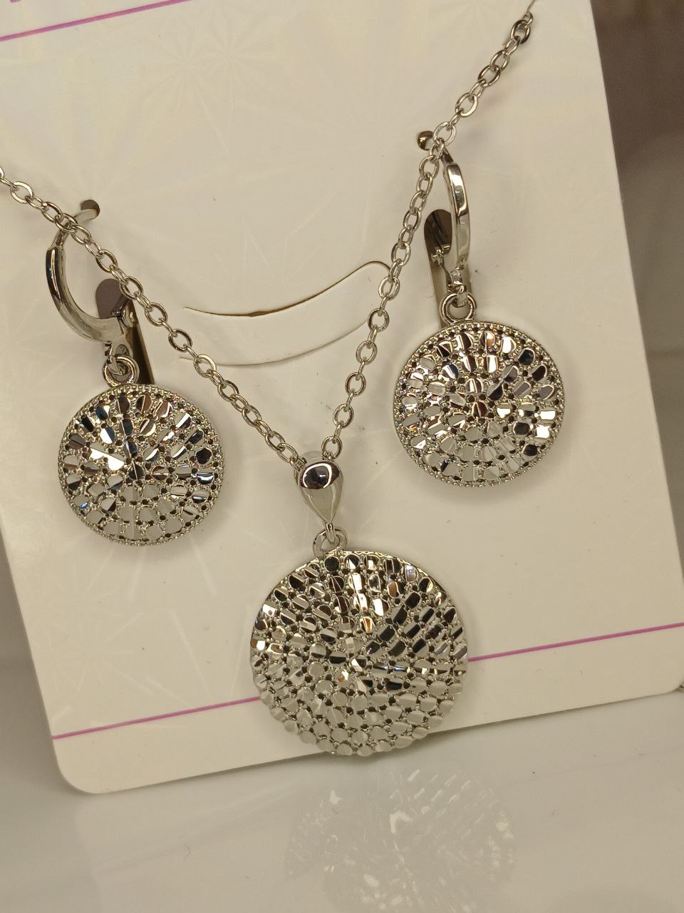 نیم ست گردنبند و گوشواره زنانه تراش خورده نقرهای استیل با کیفیت