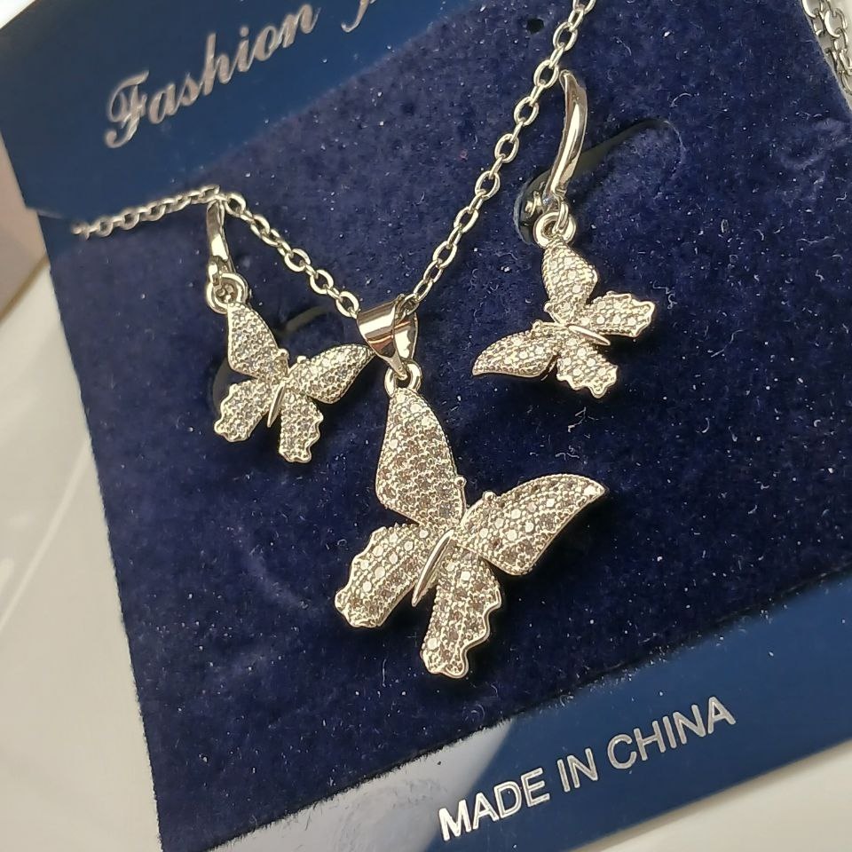 ناموجودنیم ست زنانه طرح پروانه جواهر نشان کریستالی استیل نقرهای
